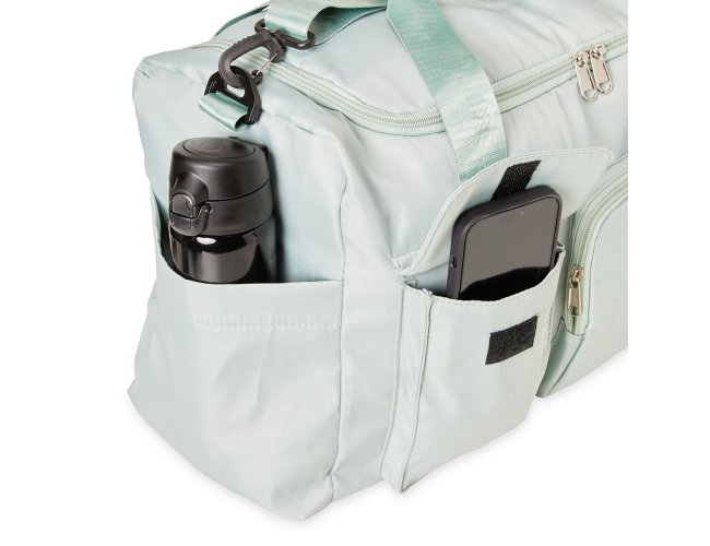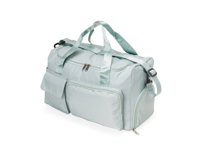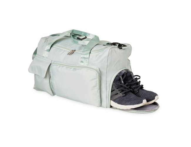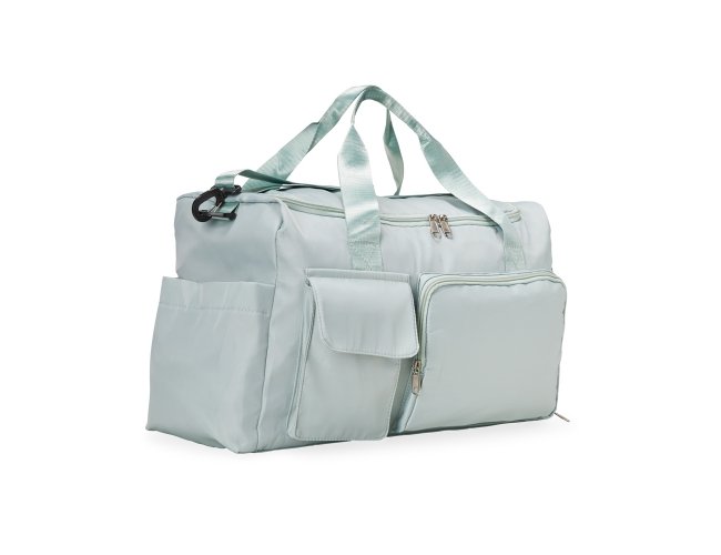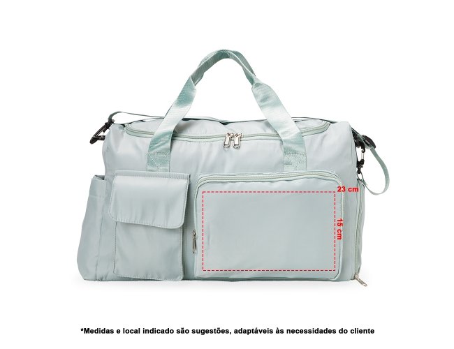 Bolsa de viagem 28 litros em poliéster de impacto impermeável com cinco compartimentos, sendo um deles exclusivos para tênis. Compartimento principal com bolso de zíper exclusivo para itens molhados. Com bolso lateral e duas alças de mãos, a bolsa contém alça transversal removível e bolso para engate em malas de viagem.
