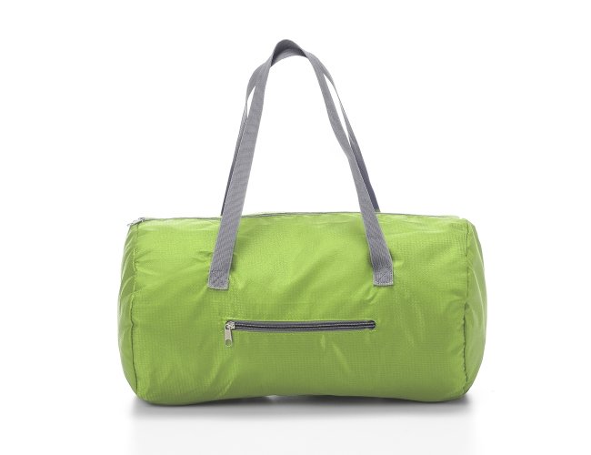Bolsa esportiva de 23 litros em poliéster impermeável com dois compartimentos.