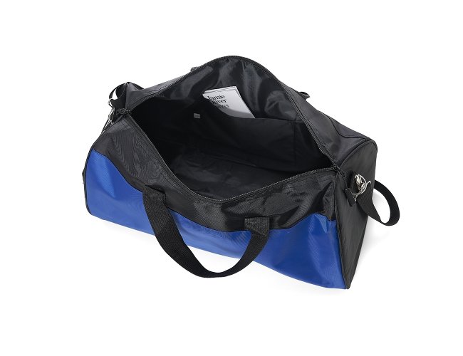 Bolsa esportiva de 26 litros em poliéster resistente à água com amplo compartimento e bolso lateral telado. Contém bolso interno, alça de mãos com suporte de juntura e acompanha alça transversal.