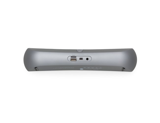 Caixa de Som Multimídia emborrachada, acompanha cabo USB. Segurar botão power para ligar e desligar, possui na parte traseira entradas USB, Micro SD(cartão de memória) e entrada auxiliar P2(pode ser conectado como caixa de som em computadores).