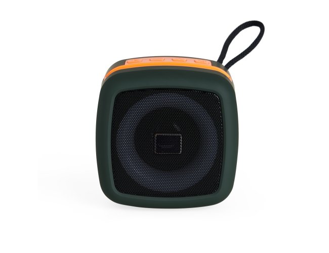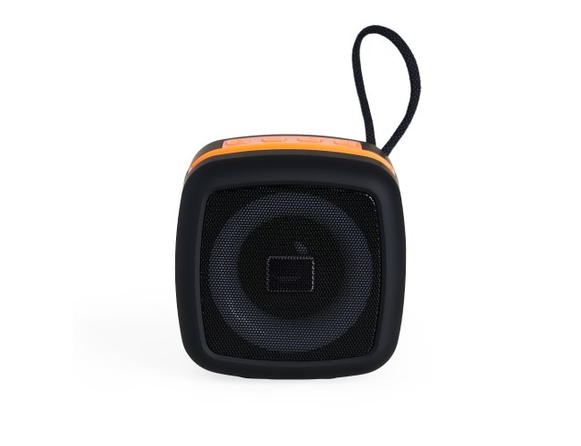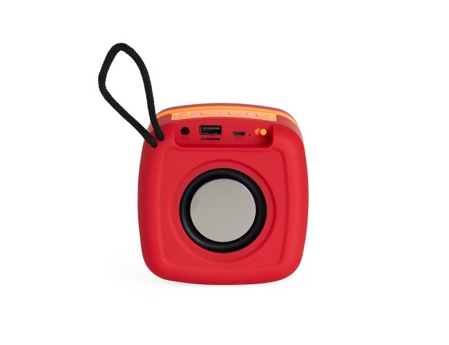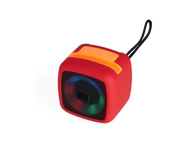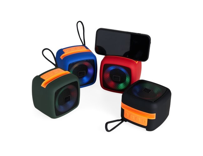 Caixa de som multimídia com conectividade TWS, luzes RGB e suporte para celular. Material plástico com base antiderrapante. Operante nos modos bluetooth, rádio FM, auxiliar P2, pen drive e cartão TF (MicroSD). A tecnologia TWS sincroniza duas caixas de som em uma só, aumentando a potência sonora. Acompanha cordão de nylon e cabo USB-V8.
