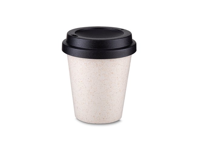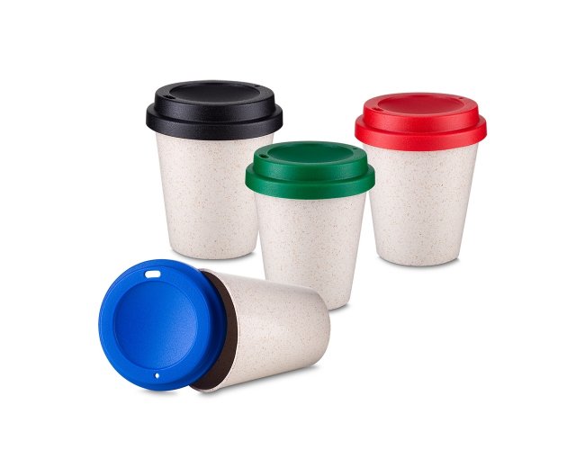 Copo fibra de arroz 350ml com tampa plástica de bocal.