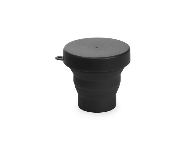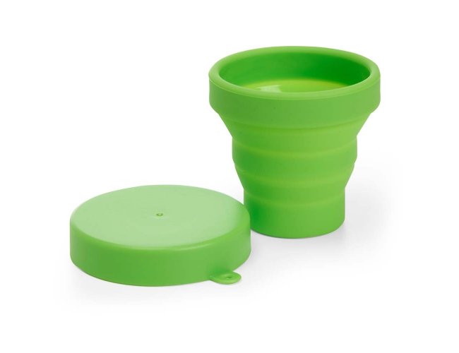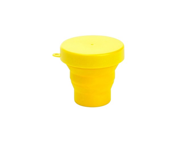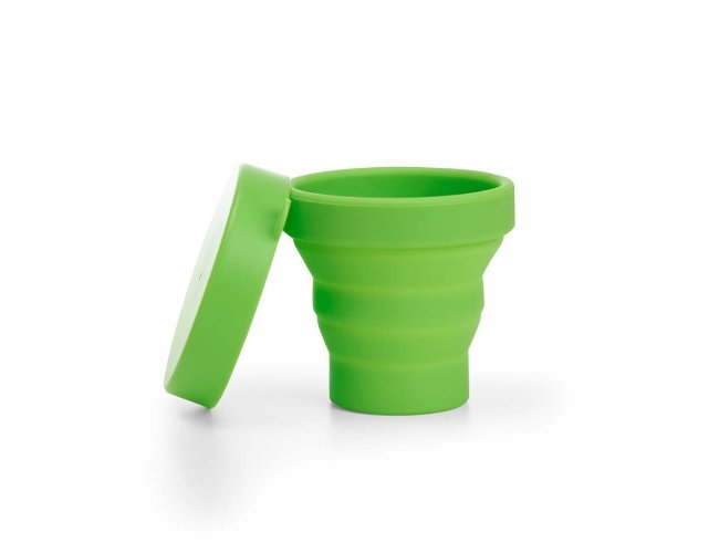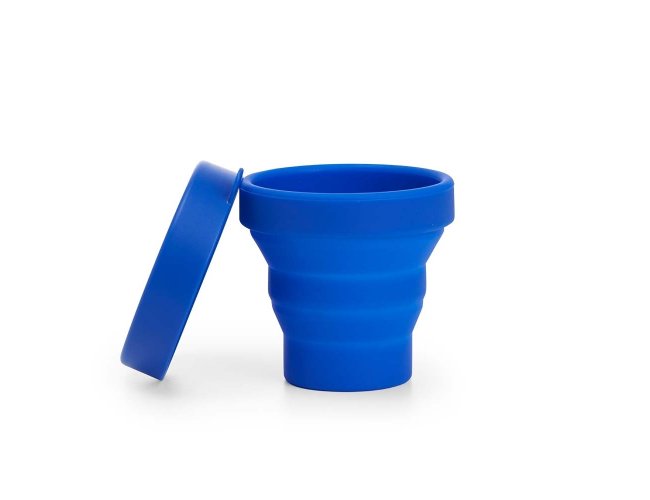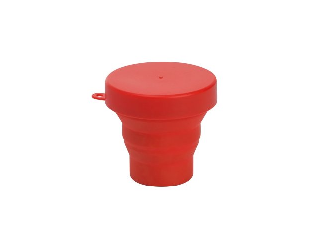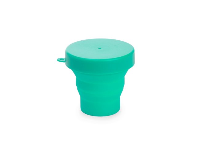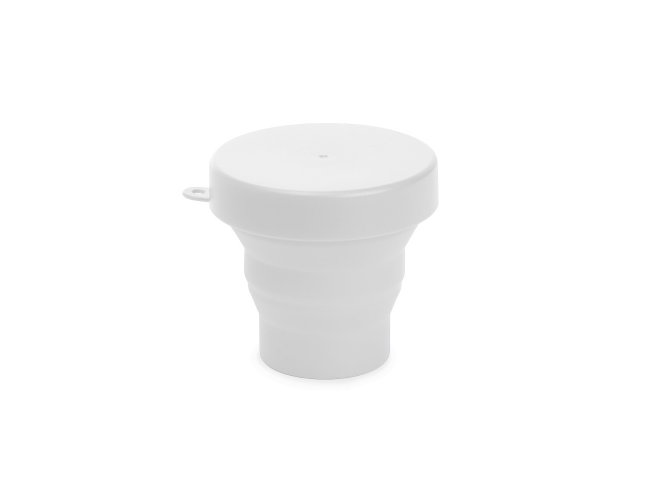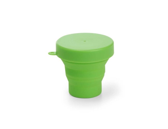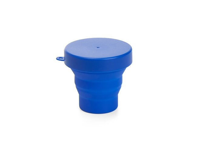 Copo retrátil com capacidade de 150ml, livre de BPA. Contém tampa plástica de encaixe com acesso para chaveiro.