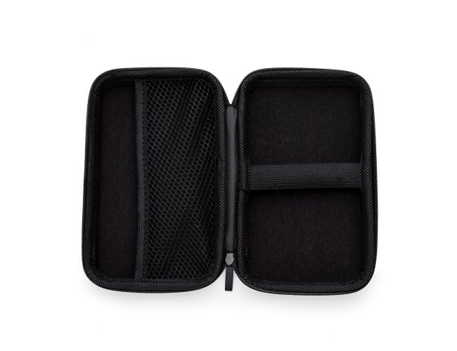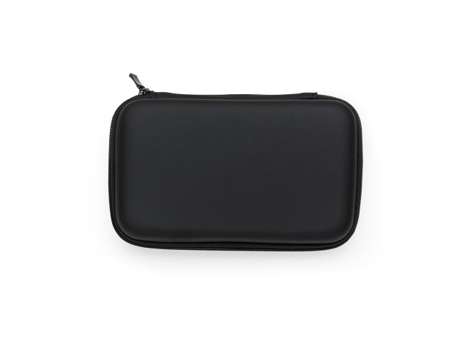 Estojo couro sintético com zíper, possui rede interna e elástico de nylon. Case utilizada para montar kits tecnológicos.