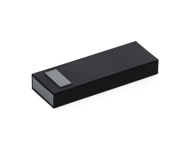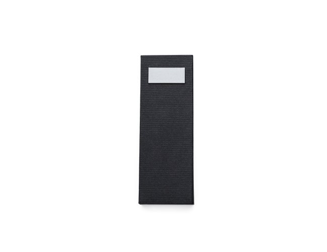 Estojo de papel para duas canetas. Capa de papel texturizado com placa plástica para personalização, estojo revestido com veludo.