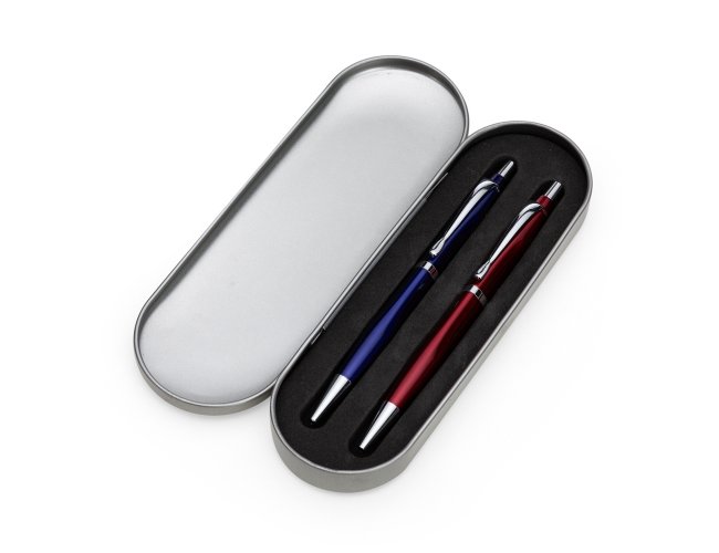 Estojo de metal e para duas canetas com parte interna revestida de espuma. Imagem meramente ilustrativa, NÃO ACOMPANHA CANETA!