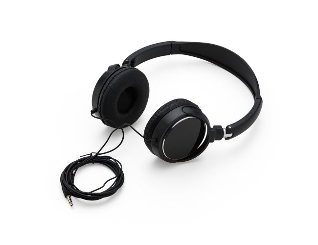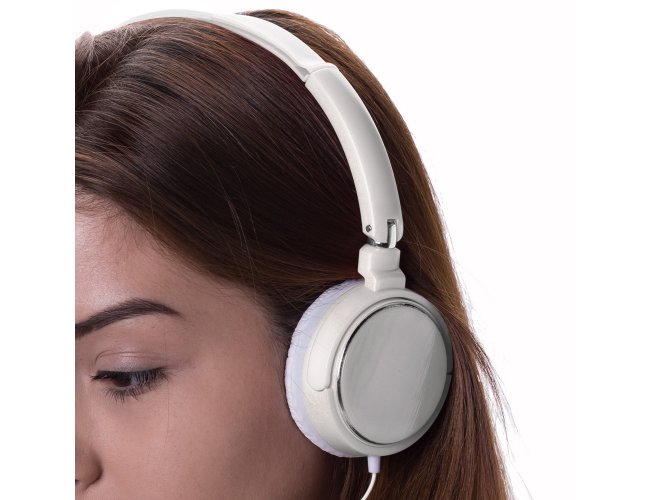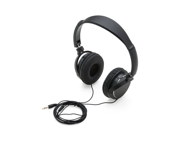 Headphone estéreo, plástico resistente com haste ajustável e fone giratório. Entrada P2.