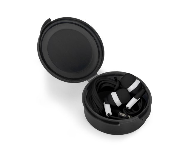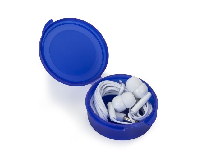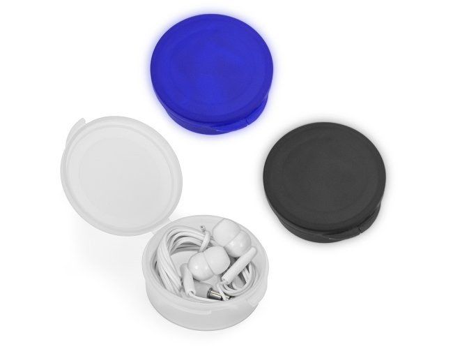 Fone de ouvido intra-auricular, caixinha redonda de material plástico fosco inteiro colorido.