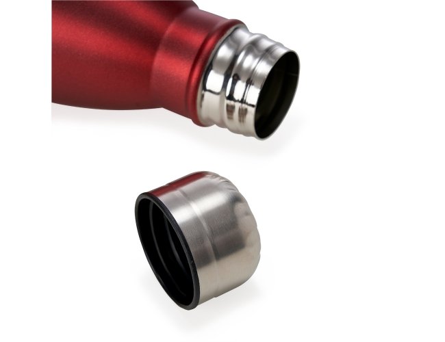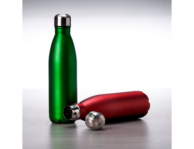 Garrafa 750ml em inox com tampa rosqueável e pintura fosca metalizada. Obs.: Não é um modelo térmico.