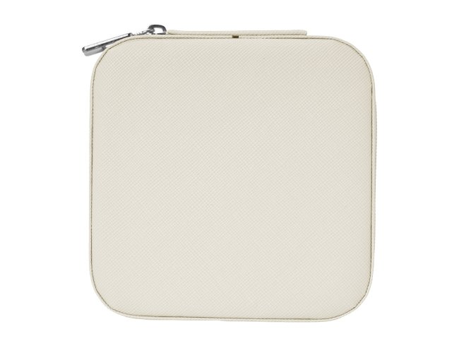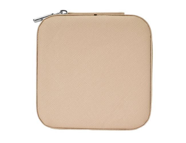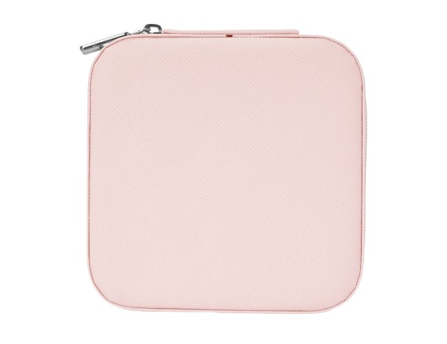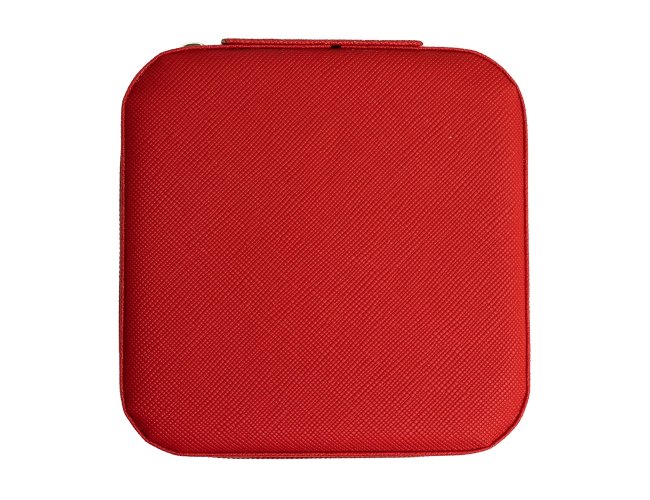 Porta joias de couro sintético com revestimento aveludado. Possui compartimentos internos para anéis, brincos, pulseiras e colares.