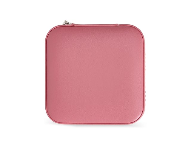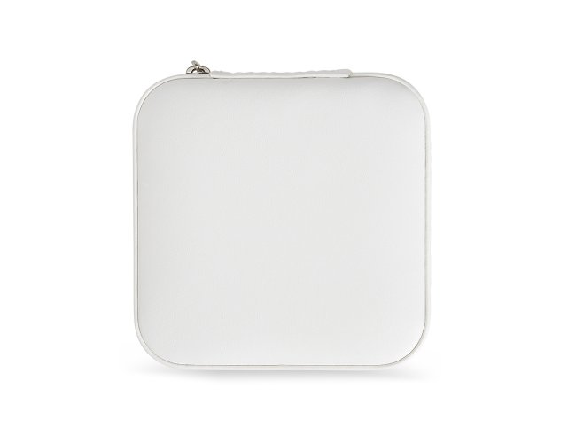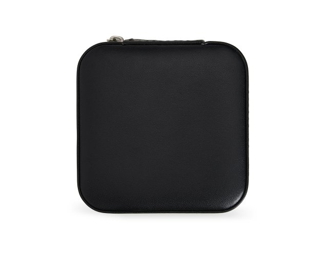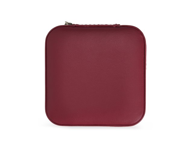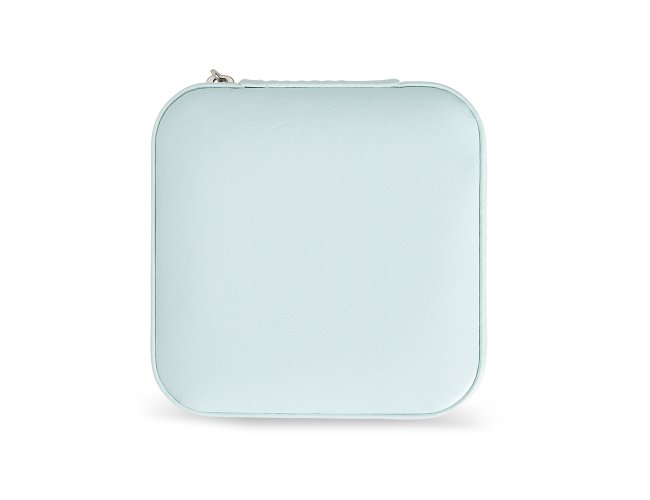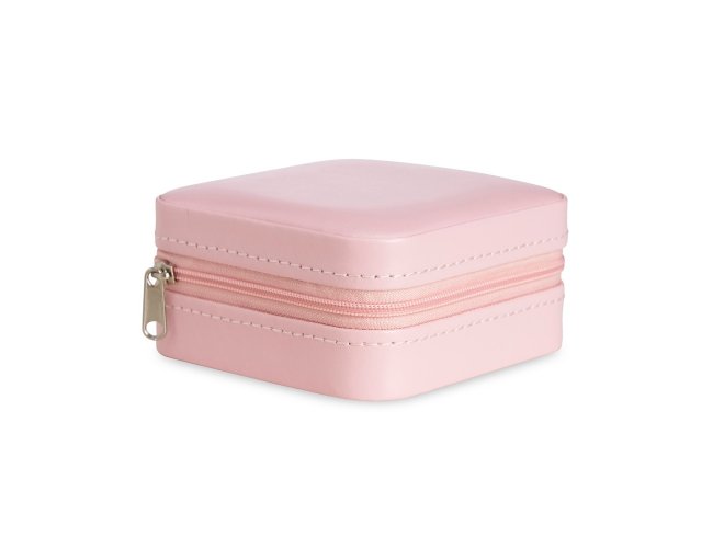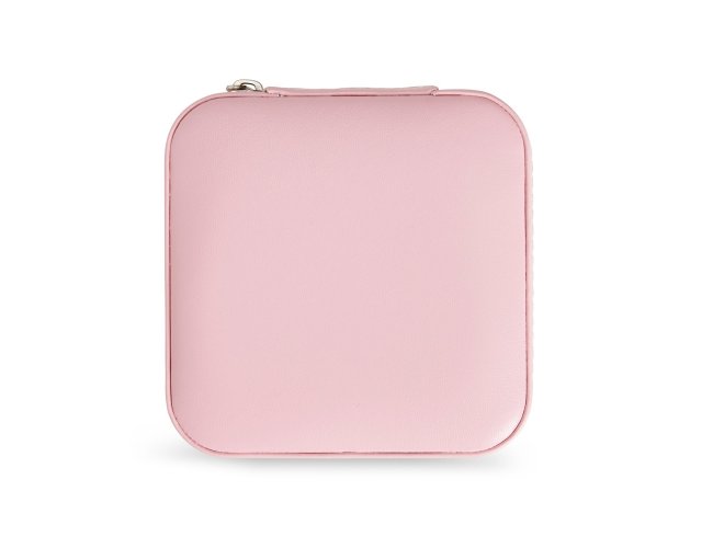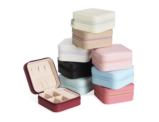 Porta joias de couro sintético com revestimento aveludado. Possui compartimentos internos para anéis, brincos, pulseiras e colares.