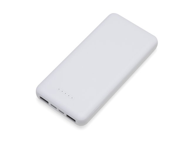 Carregador portátil de indução com 10.000mAh e indicador led de bateria, contém dois conjuntos de ventosas nas extremidades da área de indução, ideal para fixação do celular durante este modo de carga. O carregador possui duas portas de saídas USB, possibilitando o carregamento de dois dispositivos ao mesmo tempo, além do modo de carga por indução ilustrado por um raio, indicando a área correta para este modo de carga. O carregador possui duas portas de entradas, Tipo-C e V8. Acompanha cabo USB