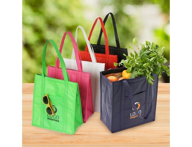 Material: TNT Gramatura: 80g/m² Altura: 35,7 cm Largura: 31,5 cm Profundidade: 17 cm Comprimento da alça: 27,5 cm Medidas para gravação (A x L): 22,5 cm x 15 cm Peso: 76 g