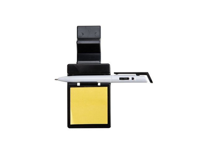 Suporte plástico para celular com caneta plástica e bloquinho de rascunho. Suporte colorido com encaixe para caneta e celular, acompanha bloquinho amarelo com aproximadamente 50 folhas e caneta plástica branca com detalhes coloridos(acompanha na mesma cor do suporte), aciona por clique e para destravar basta apertar a parte inferior do clip.